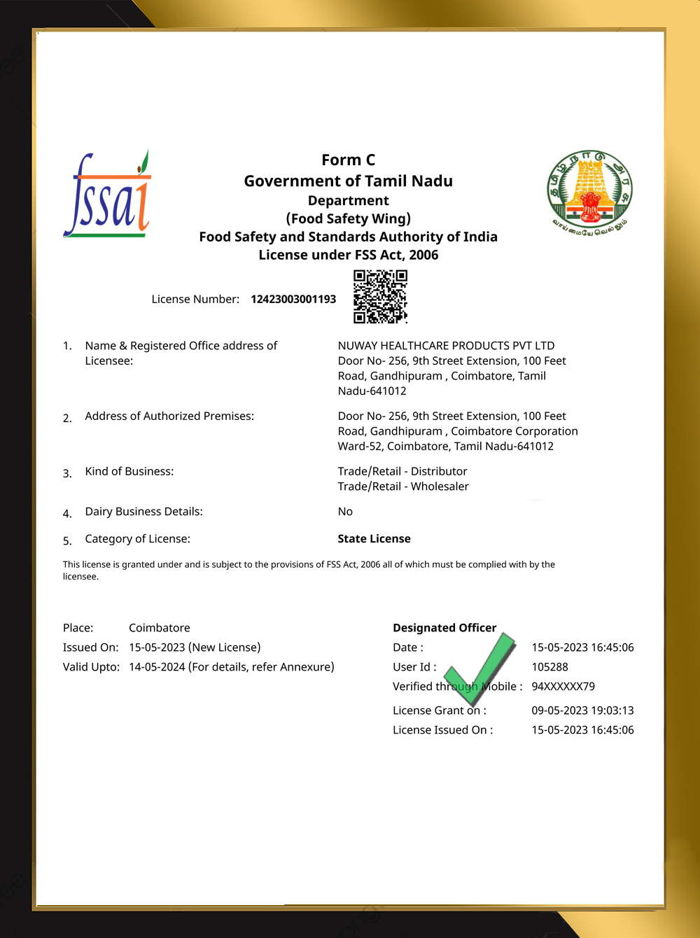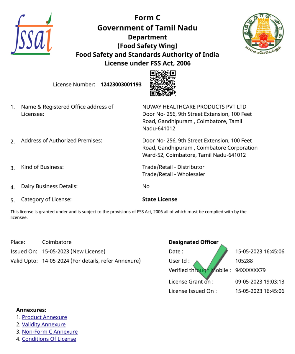 FSSAI - NUWAY HEALTHCARE PRODUCTS PRIVATE LIMITED |