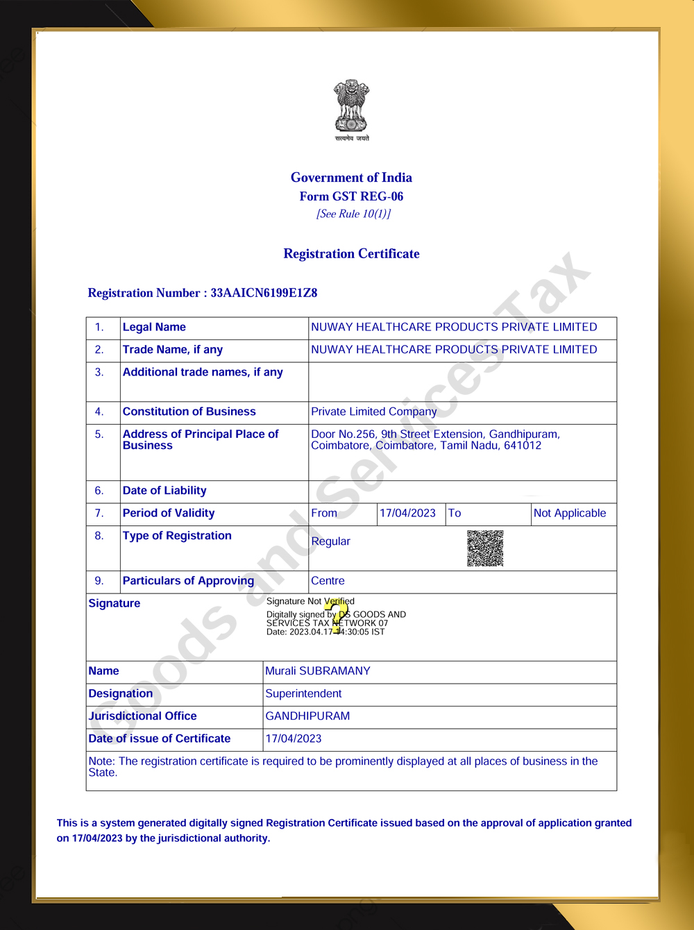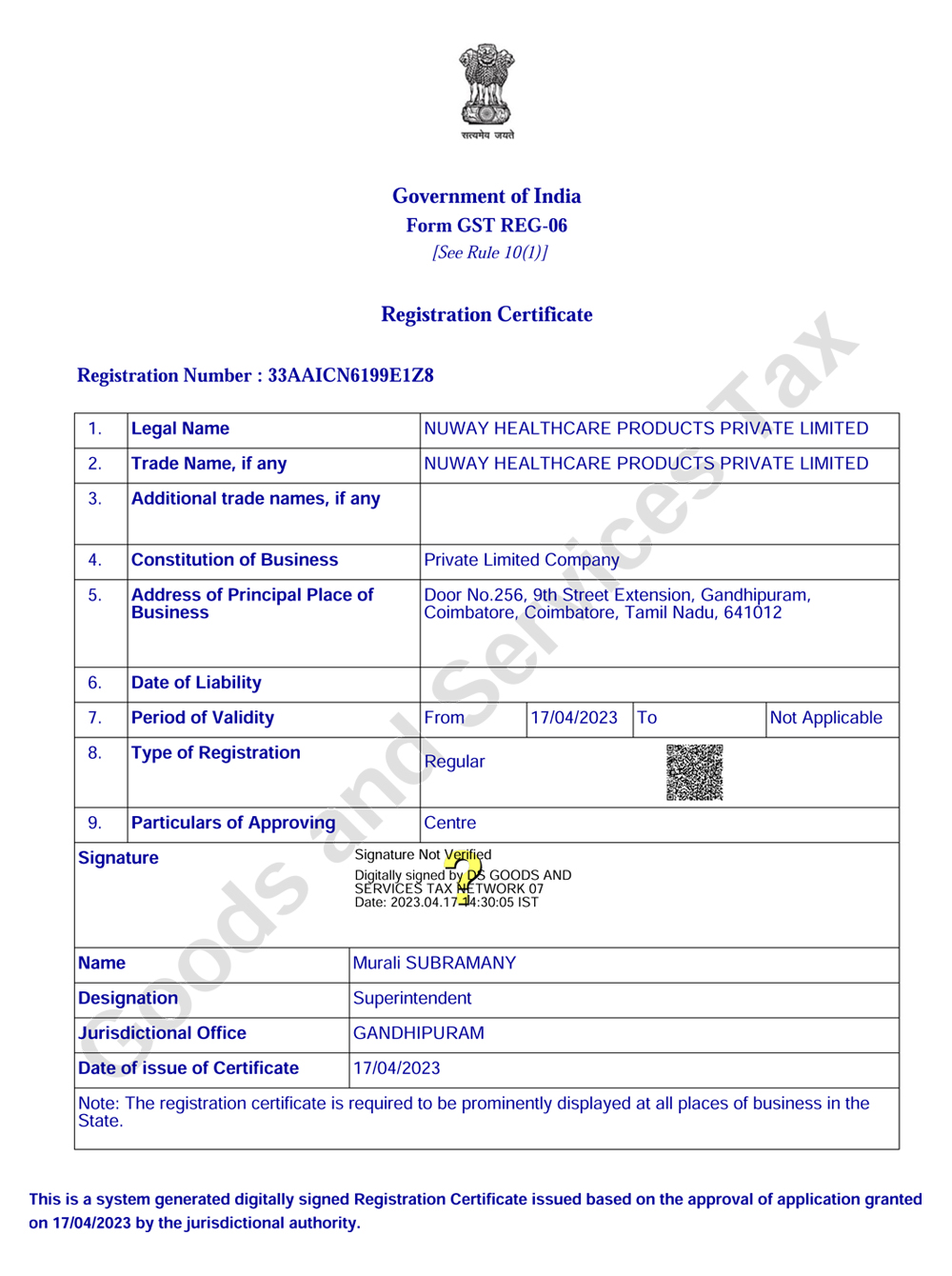 GST Certificate - NUWAY HEALTHCARE PRODUCTS PRIVATE LIMITED |